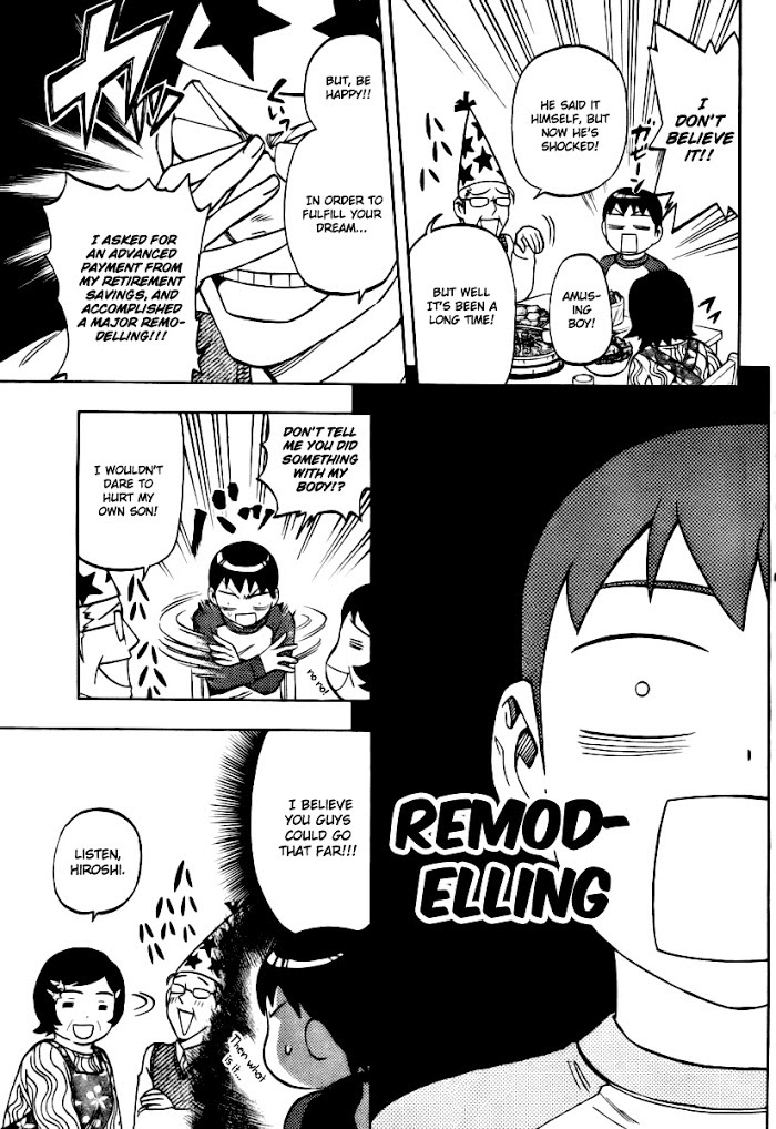Birthday (TANABE Yellow) manga summary: Hiroshi is weak when it comes to his parents. He doesn't hate his parents nor do his parents abuse him. Actually, its the exact opposite; he dislikes being spoiled by his parents. Because his parents had him at a fairly old age, his parents idolize him and gives him too much affection. They hold fancy birthday parties, preserve his art projects in a glass case, make him extra-large puddings, make banners for him even though he is on the bench, etc. They are just too much for Hiroshi who just wants to be an ordinary high school student. On his 15th birthday, his parents give him the craziest present yet: a toy that will make him a hero. Can Hiroshi fulfill his wish to become an ordinary boy?Read & find out! A oneshot by Tanabe Yellow, the mangaka of Kekkaishi.