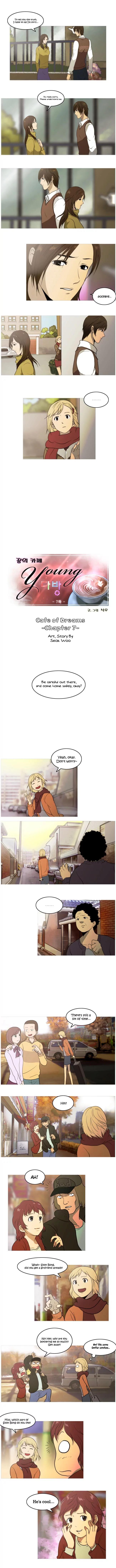 Cafe of Dreams manga summary: Soo Ah discovers the cafe of dreams, young teahouse while floundering about trying to find a job.... Drinks sweet coffee while listening to baristas tell her of future dreams and hope.