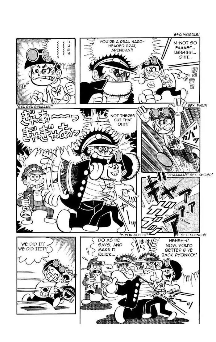 When Hiroshi was fighting against his rival Gorillaimo, he stumbled over a stone and fell on to a frog. To be surprised, the frog was still alive and it named itself Pyonkichi. (Source: AniDB)