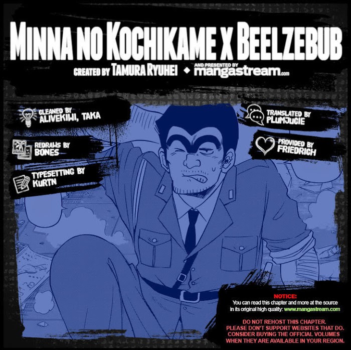 Minna no Kochikame x Beelzebub manga summary: Minna no Kochikame x Beelzebub summary is updating. Come visit VyvyManga.com sometime to read the latest chapter of Minna no Kochikame x Beelzebub. If you have any question about this manga, Please don't hesitate to contact us or translate team. Hope you enjoy it.