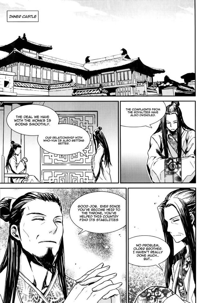 The year is 387 in Gogeuryuh, city of Yodong where there is much conflict between two nations. Lately Hoo yun soldiers (the enemy nation) have been harassing the citizens in the outskirts of Gogeuryuh. A faithful young Prince of Gogeuryuh, Prince Dam Duk, is outraged and therefore saves his people by wielding his sword, but by doing so he loses his title of prince, and becomes a wanted fugitive of his nation! (Source: M-U)