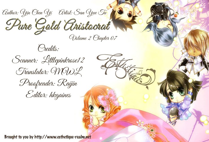 Pure Gold Aristocrat manga summary: A super prestigous school that will make you jealous! A complicated student life is about to begin! Cai Ying is ending her study tour in England with her good friend Gong Liang Hui, taking Elizabeth High's ocean liner back to school. As she is ready to board the ship at the harbor, she bumps into a mysterious handsome man who is being chased--?!