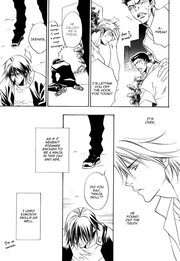 Description :Ikehata Shino was raised as a kuniochi, a fearless female ninja who uses sex to get information from men. Since he's a guy Ikehata never thought he'd use his skills, until he met the cool, handsome Andou. But no matter how hard he tries, Ikehata can't seem to get his man...