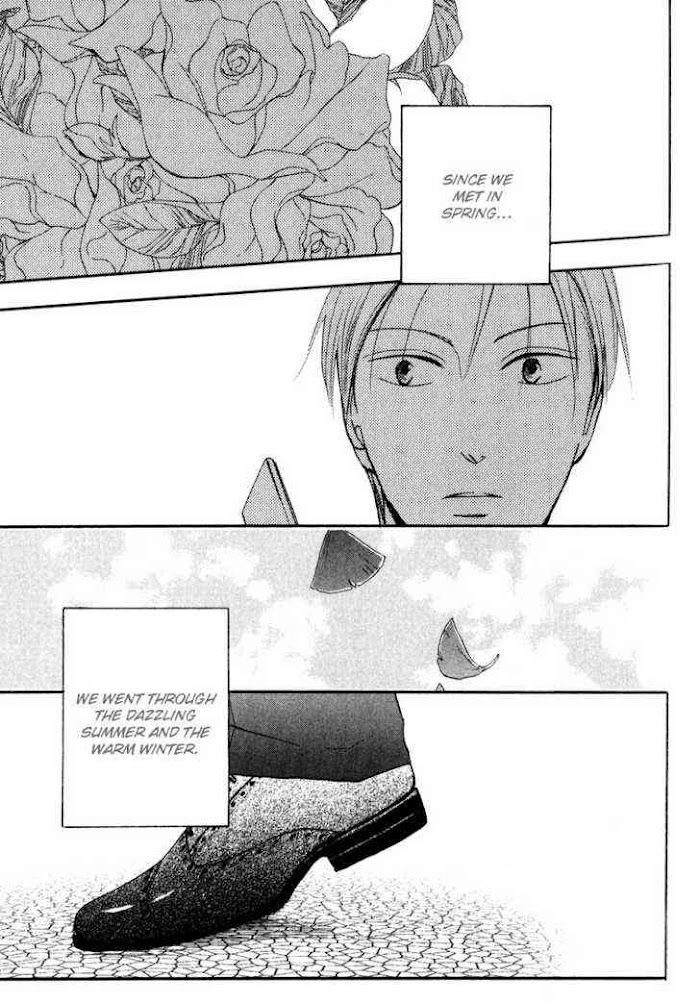 Kazushi, an elite, met Harutomo, a cleaner whose dream is to become a chef. Because Harutomo has always been treasuring the change in seasons, after falling in love with him, Kazushi started to treasure the changes too. He found his world started to fill with colors and he finally understood the happiness of "giving." Let Fujitani-sensei take you through the seasons with this very lovely story on how this couple work hard towards their future together and how they manage through their long-distance relationship when Kazushi was posted overseas. (Source: Attractive Fascinate)